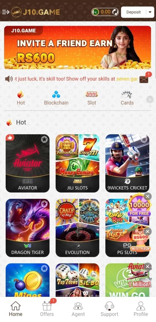 The J10 Game is a popular online gaming app in Pakistan offering casino, cards, slots, lottery, and sports betting.